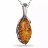 rav halskjede i sølv med anheng i sølv med blank overflate og 1 cabochonslipte brun rav.