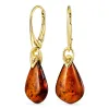 rav øredobber i forgylt sølv med blank overflate og glatt konjakk farget rav.