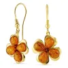 rav øredobber i forgylt sølv med blank overflate og glatt konjakk farget rav.