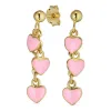 rosa hjerteøredobb i forgylt sølv med blank overflate og 6 glatte rosa emaljer.