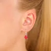 dråpeformede øredobber i 9 karat gull med blank overflate og fasettslipt rød rubin og fasettslipt hvit zirkon.