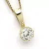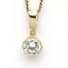 rundt anheng i 9 karat gull med blank overflate og 1 fasettslipte hvite zirkoner.