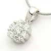 rundt anheng i sølv med blank overflate og 7 fasettslipte hvite zirkoner.