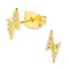 lyn øredobber i forgylt messing med blank overflate og fasettslipt hvit zirkon.