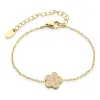 vanntett blomst armbånd i forgylt stål med blank overflate og fasettslipt hvit zirkon.