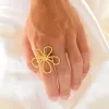 vanntett blomst justerbar ring i forgylt stål - OCEANA