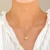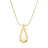 vanntett dråpe halskjede i forgylt stål med blank overflate 1 hvite syntetiske perler.