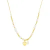 vanntett hjerte halskjede i forgylt stål med blank overflate hvit syntetisk perle.