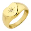 vanntett hjerte ring i forgylt stål med blank overflate og 1 fasettslipte hvite zirkoner.