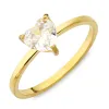 vanntett hjerte ring i forgylt stål med blank overflate og 1 fasettslipte hvite zirkoner.