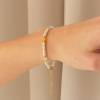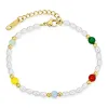 vanntett multifarget perle armbånd i forgylt stål med blank overflate hvit syntetisk perle.