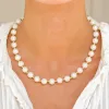 vanntett perle halskjede i forgylt stål med blank overflate hvit syntetisk perle.