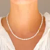 vanntett hjerte perle halskjede med anheng i forgylt stål med blank overflate hvit syntetisk perle.
