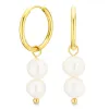 vanntette perle creol i forgylt stål med blank overflate 4 hvite syntetiske perler.