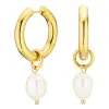 vanntette perle creol i forgylt stål med blank overflate 2 hvite syntetiske perler.