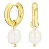vanntette perle creol i forgylt stål med blank overflate 2 hvite syntetiske perler.