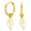 vanntette perle creol i forgylt stål med blank overflate 2 hvite syntetiske perler.