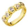 zirkon ring i forgylt messing med strukturert og blank overflate og 5 fasettslipte hvite zirkoner.